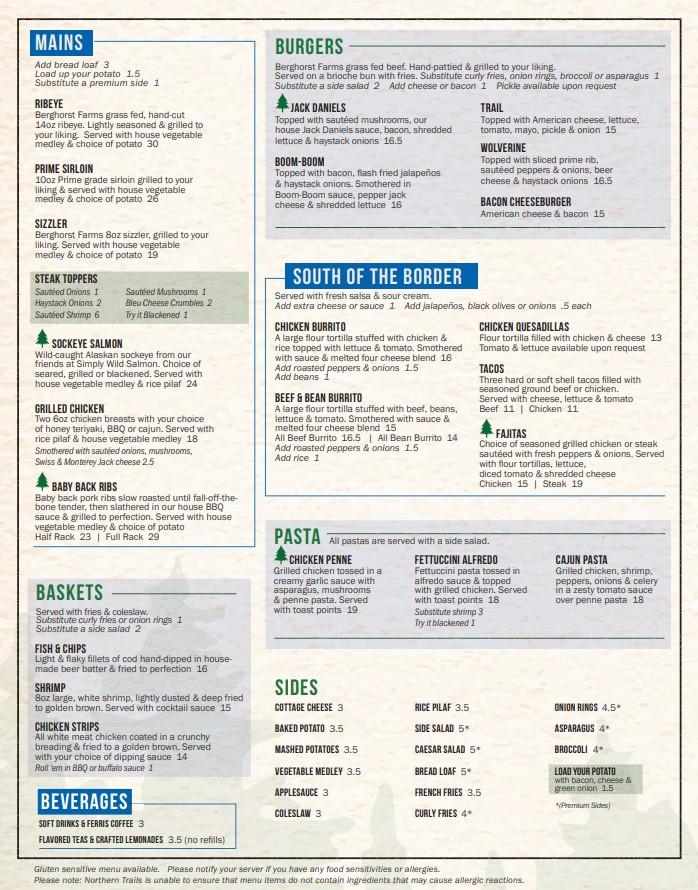 The menu at Northern Trails focuses on traditional comfort food with a creative twist. Diners can expect hearty dishes crafted using local ingredients. Specialties include fresh fish and flavorful sandwiches among other options. For sharing, small plates make perfect appetizers. The bar offers unique cocktails and an impressive beer selection, showcasing local brews. Desserts are an essential treat, adding sweetness to every meal. A kid’s menu is available, making the place family-friendly. Happy hour specials on food and drinks enhance the experience for patrons looking to unwind after a long day.